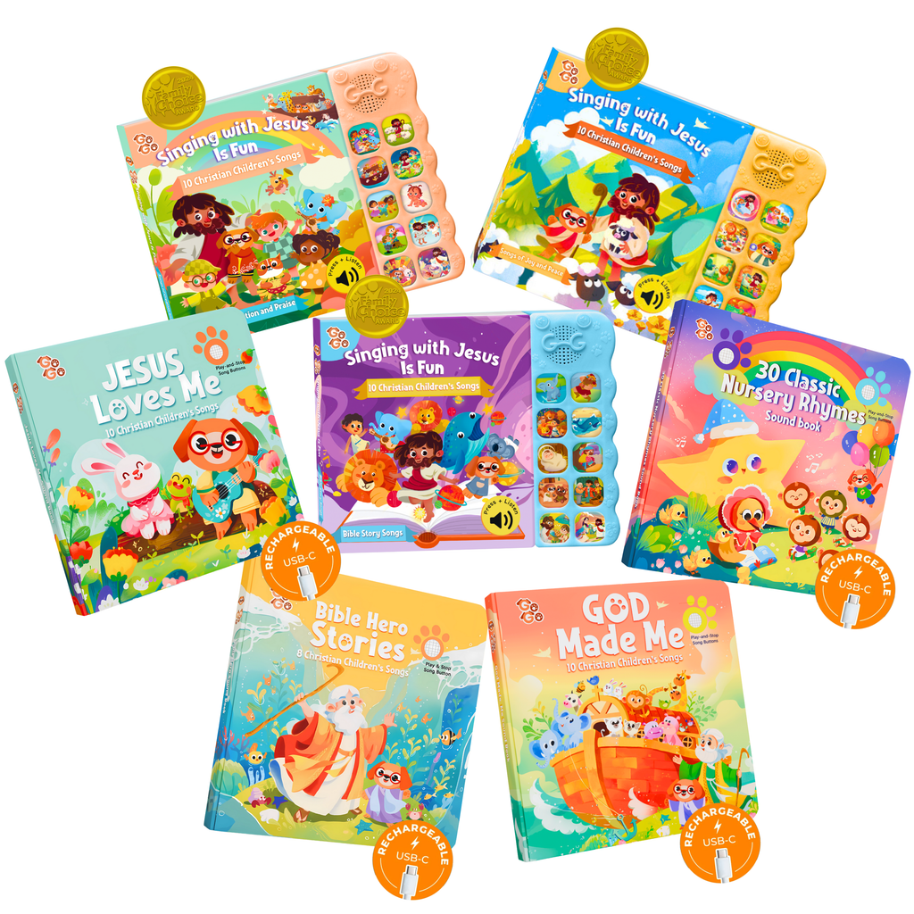 Christian Sound Books for Kids introduces children to faith through music. Each book includes eight songs inspired by Bible stories, featuring classic hymns, children's Bible songs, and new compositions based on scripture. With lively melodies and engaging illustrations, these books bring biblical teachings to life in a fun and interactive way.