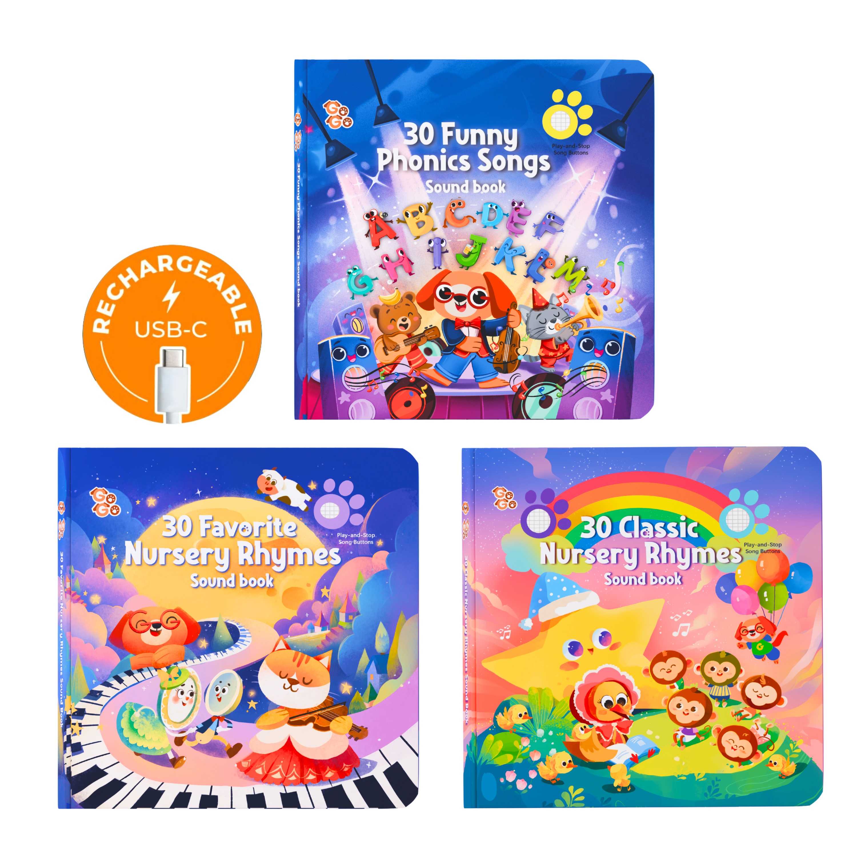3 Rechargeable Sound Book Bundle with 90 Songs (Nursery Rhymes + Phonics Songs) - Pre-Order