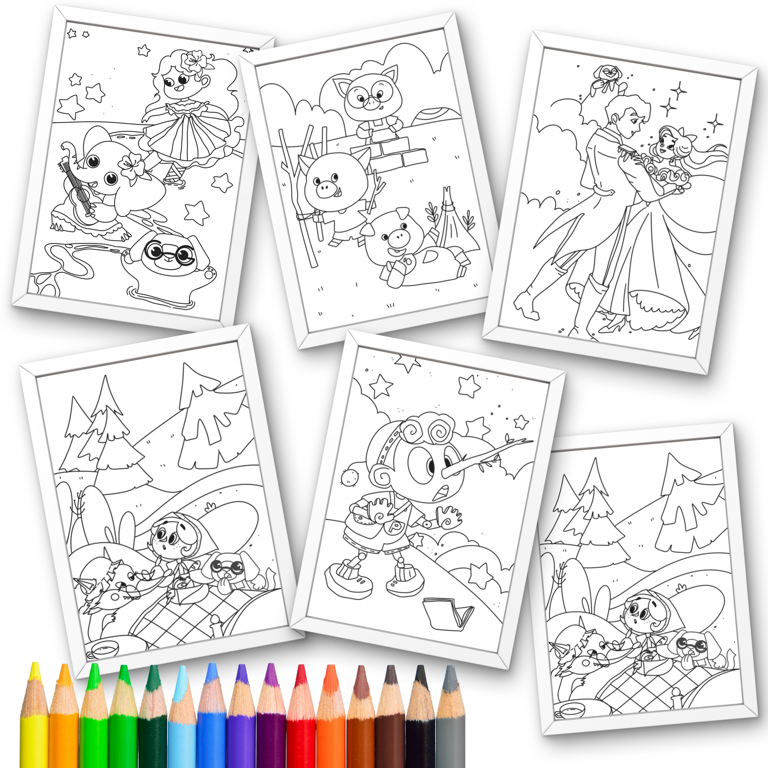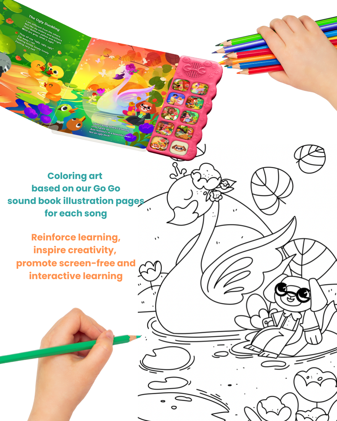 Digital Coloring Pages Based on GO GO Fairy Tale Sound Book (10 Pages, Printable), Pencils NOT included.
