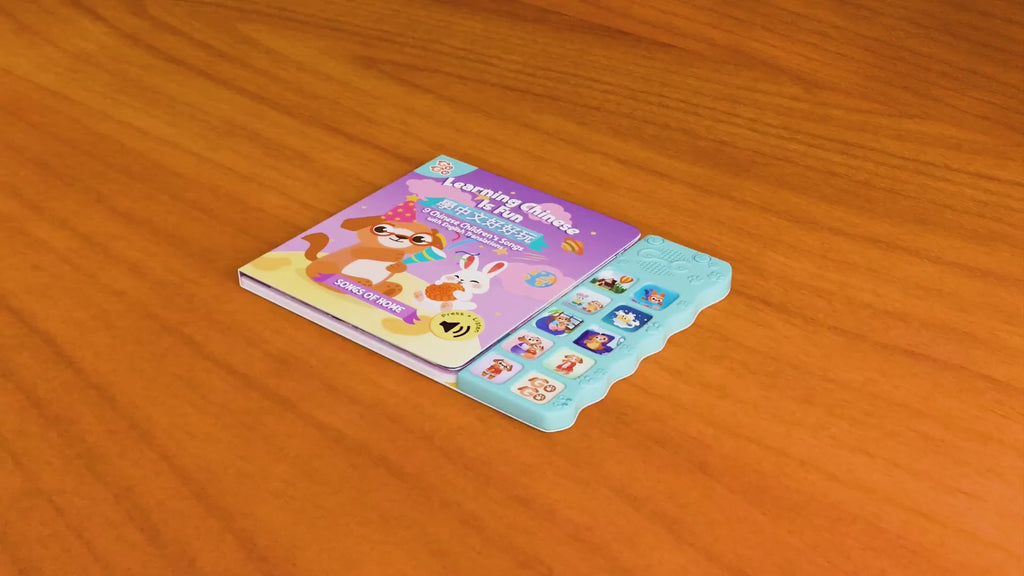 Introduce your children to 8 classic Chinese songs with this interactive sound book. Featuring 8 sing-along songs easy for kids, lively melodies, and Chinese music elements. Learn about Chinese culture. Each song comes with English translations. Our professional singers know how to capture little children’s attention. Your little one will have endless fun!